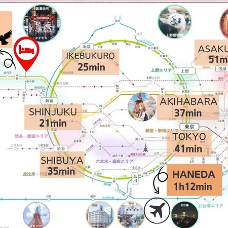 This holiday home is situated 450 metres from the Kitano Shrine Matsugaoka and in proximity to Tetsugaku-do Public Park. The Kuzuyagoryo Shrine is a 9-minute walk away. The property is 3.9 km from the Tokyo Metropolitan Government Building.